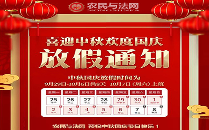 2023年喜迎中秋歡慶國(guó)慶,至此雙節(jié)來(lái)臨之際農(nóng)民與法網(wǎng)預(yù)祝中秋國(guó)慶節(jié)日快樂!